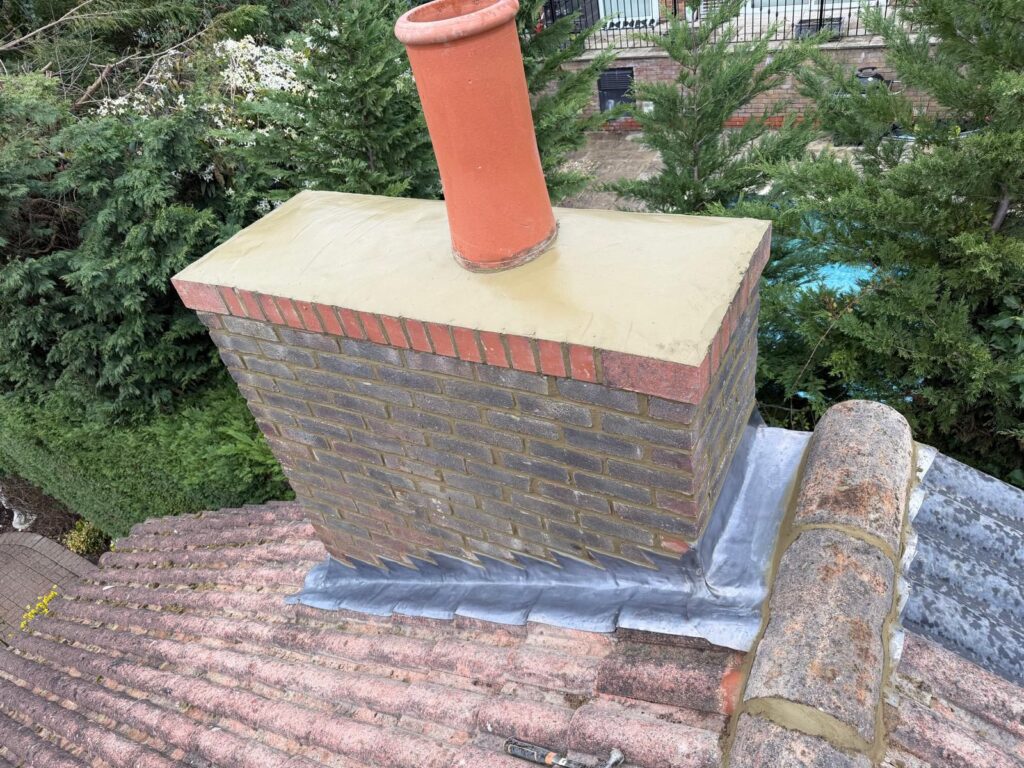 We carefully removed the damaged chimney crown in Tottenham and beautifully rebuilt it with a smooth, expertly finished concrete top, neatly sealed around the flue,