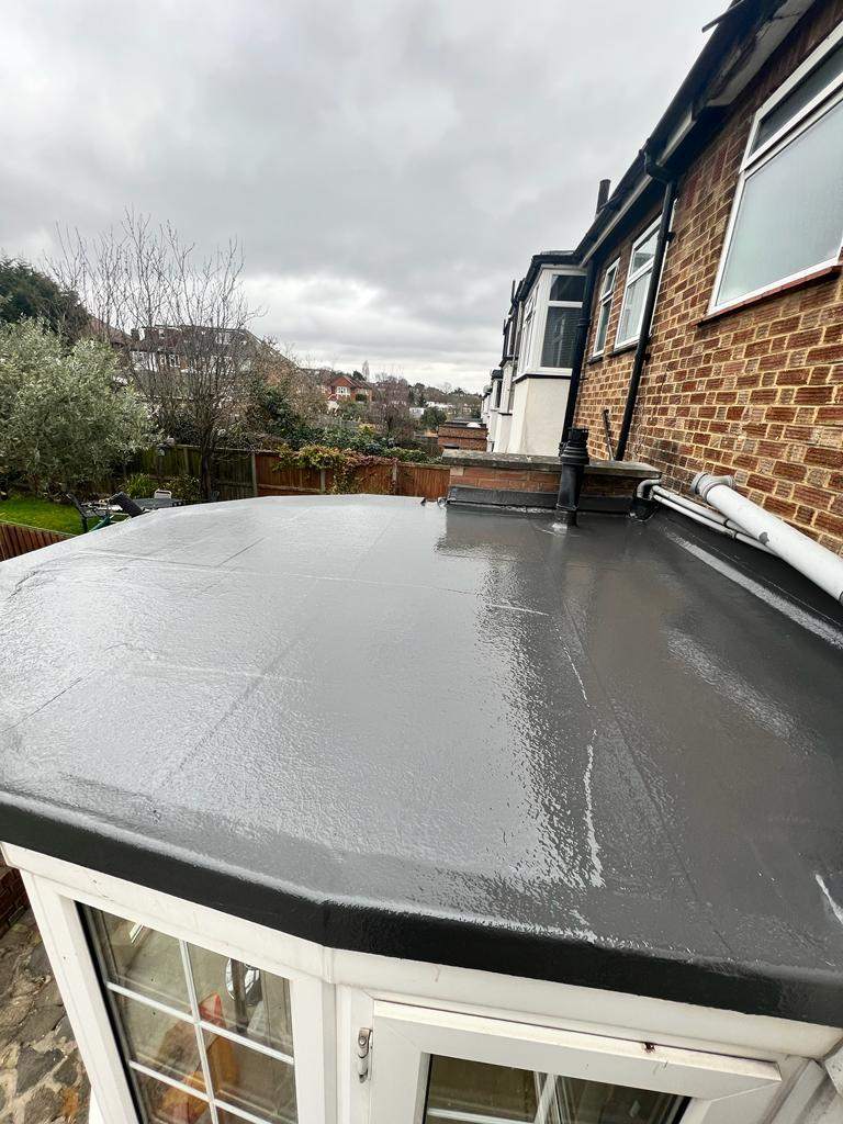 We recently completed a fibreglass flat roof replacement in Southgate, providing a long-lasting solution for a property with persistent leaks and weathering. Our team removed the old roof covering, prepared the surface, and installed a new GRP fibreglass system known for its strength, seamless finish, and durability. The finished roof offers excellent waterproof protection and a clean, modern appearance. The homeowner was very pleased with the quality of the work and the superb final result.