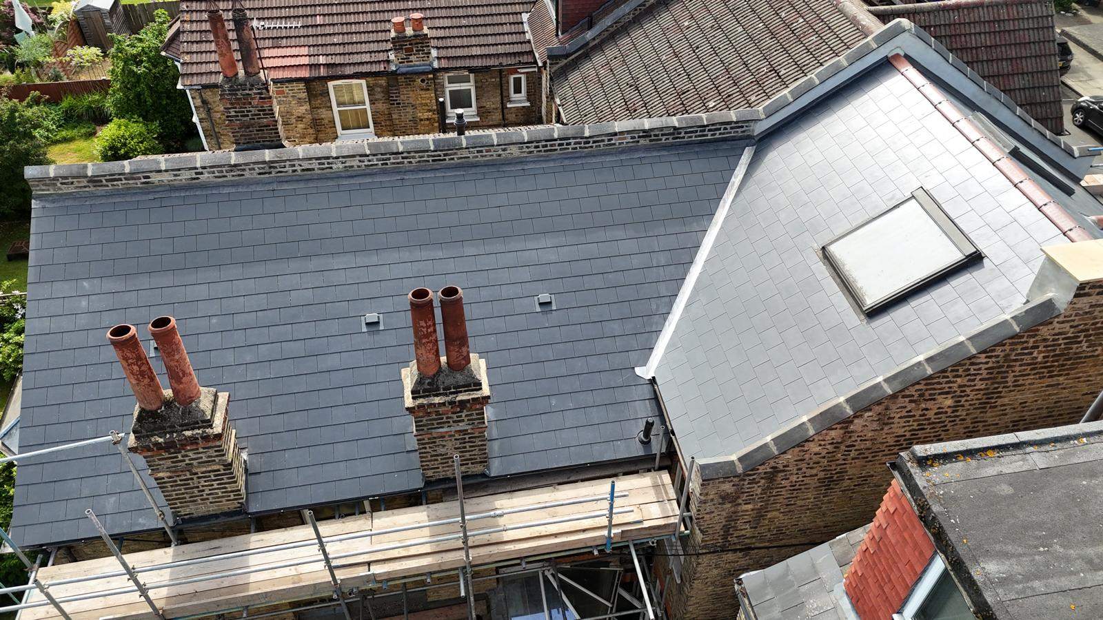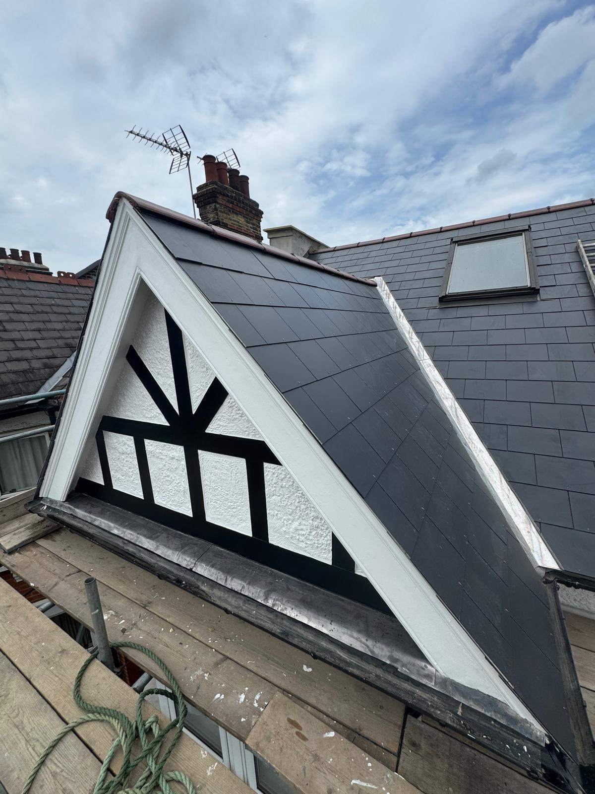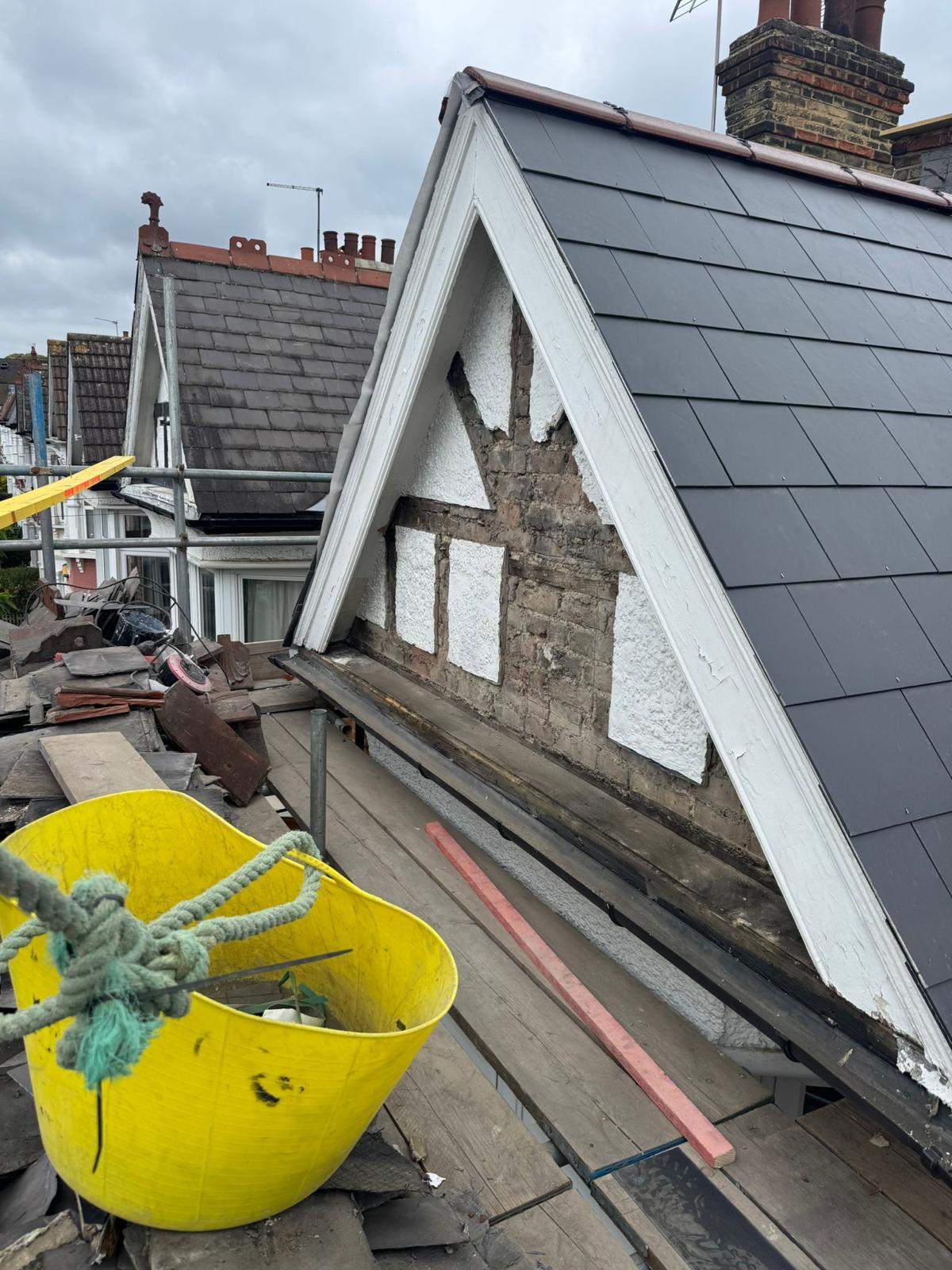 We recently completed a slate roof replacement in Palmers Green, transforming an older roof that had suffered from age and weather damage. Our team removed the existing slates, checked and reinforced the roof structure, and installed new premium natural slate for a timeless, durable finish. The new roof not only enhances the home’s character but also ensures long-lasting protection against the elements. The customer was thrilled with the craftsmanship and elegant appearance of the completed work.