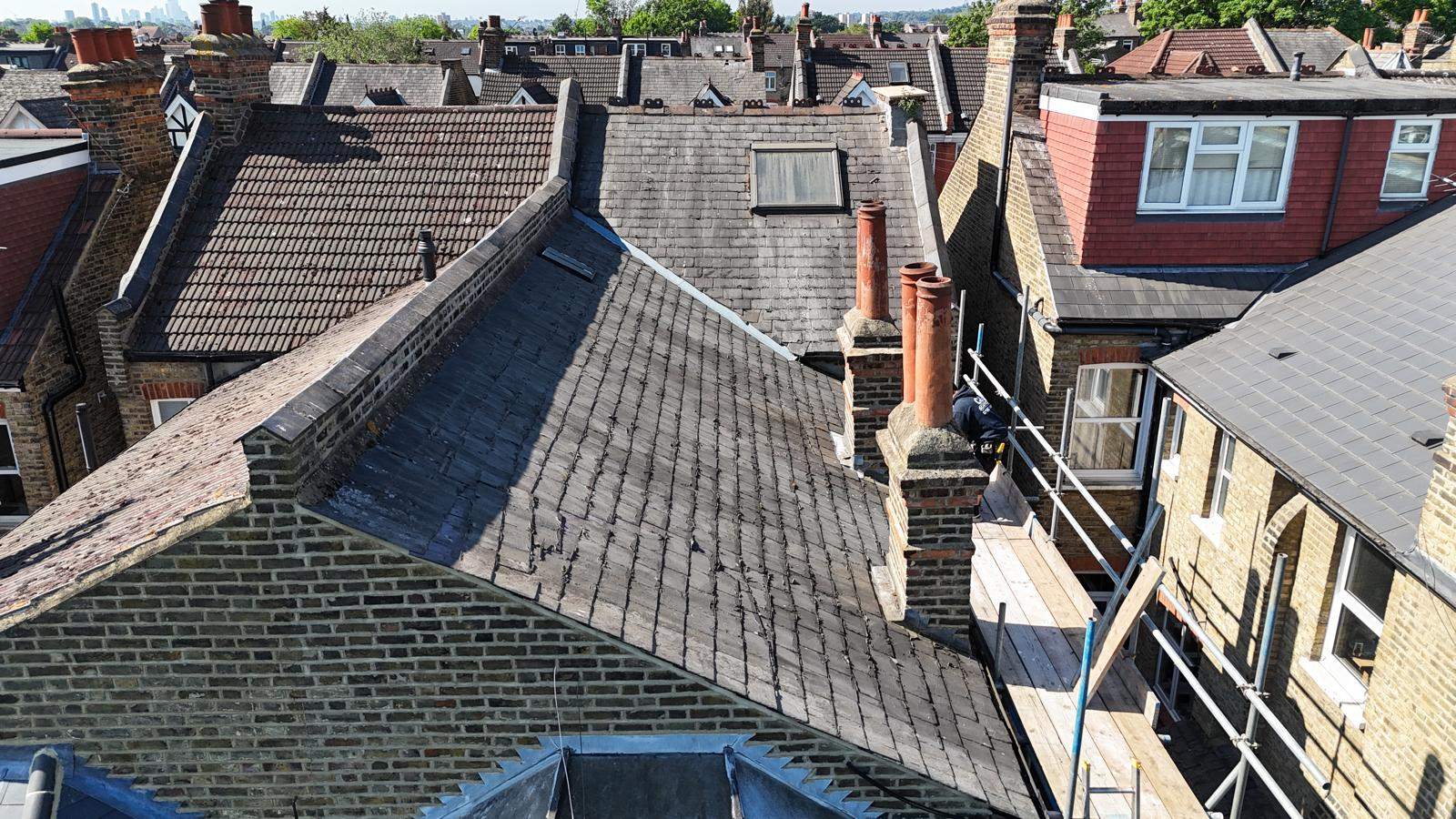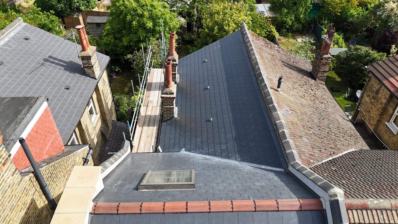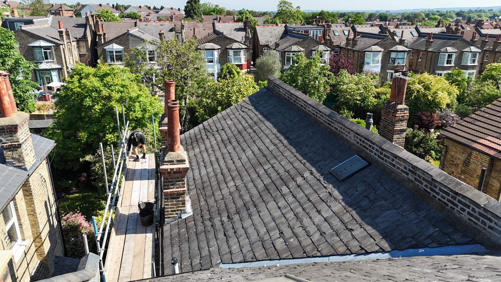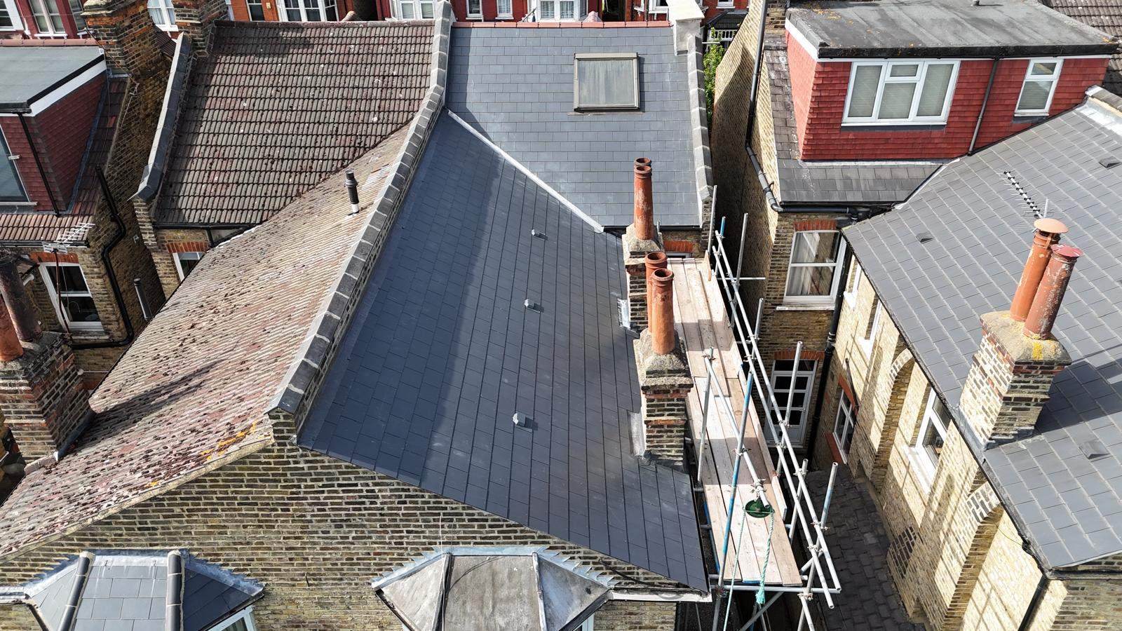 We recently completed a slate roof replacement in Palmers Green, transforming an older roof that had suffered from age and weather damage. Our team removed the existing slates, checked and reinforced the roof structure, and installed new premium natural slate for a timeless, durable finish. The new roof not only enhances the home’s character but also ensures long-lasting protection against the elements. The customer was thrilled with the craftsmanship and elegant appearance of the completed work.